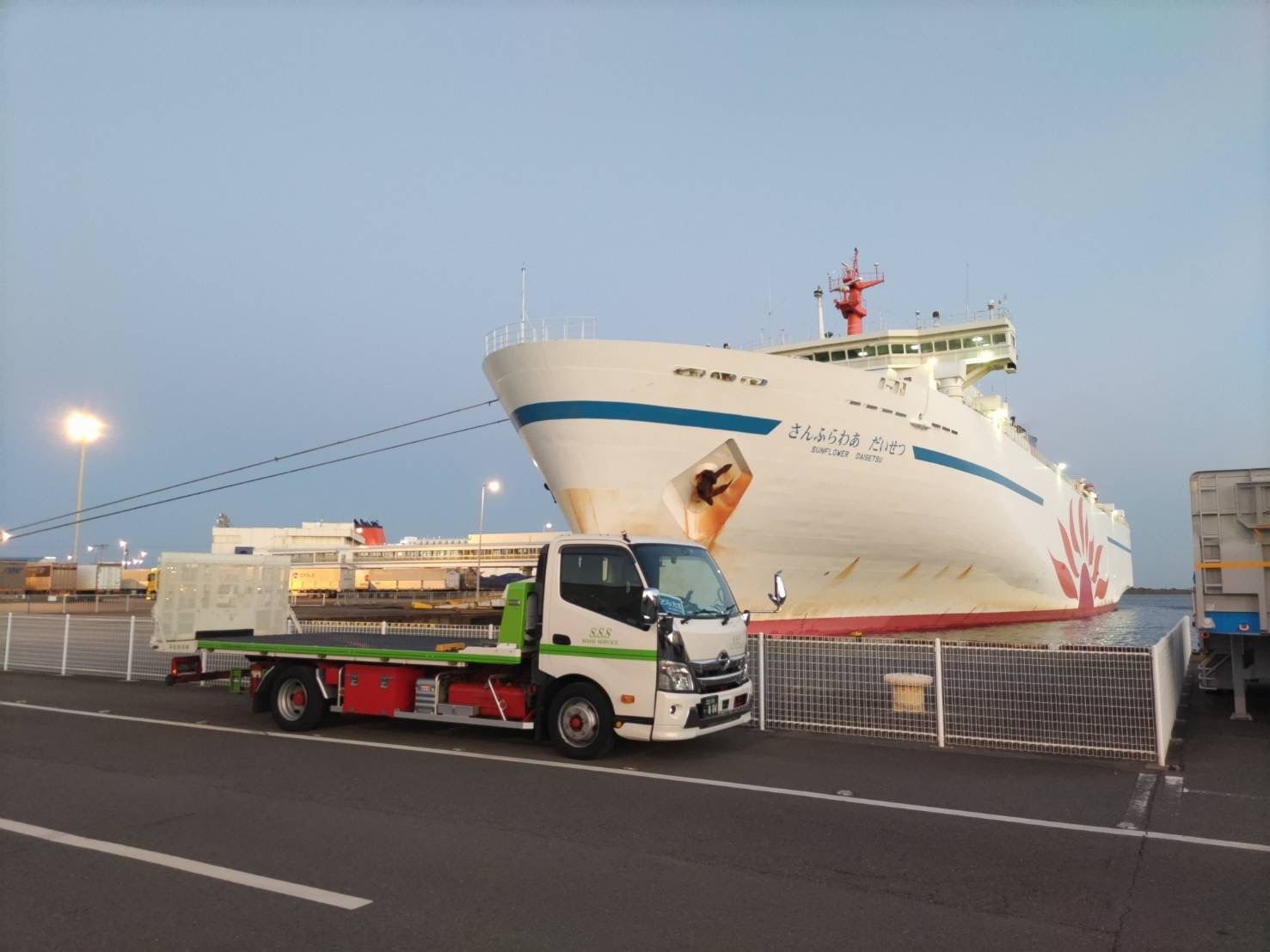2024.1.28 さんふらわあ みなさんこんにちは! 今日はとある日に搬送に伺った旅客船の写真を入手したのでこちらに載せます! でっかいですね・・ タイトルにもある通りこの船は【さんふらわあ】というそうで、この時は北海道まで行く便でした! 船とローダーで2ショットまで撮っちゃいました(^^) 船が大きいのでローダーが小さく見えますね・・ またお写真入手したら業務の1コマご紹介 させて頂きます!(^^) 次回もお楽しみに〜!! 金太郎!?! 猫バンバンをしましょう!