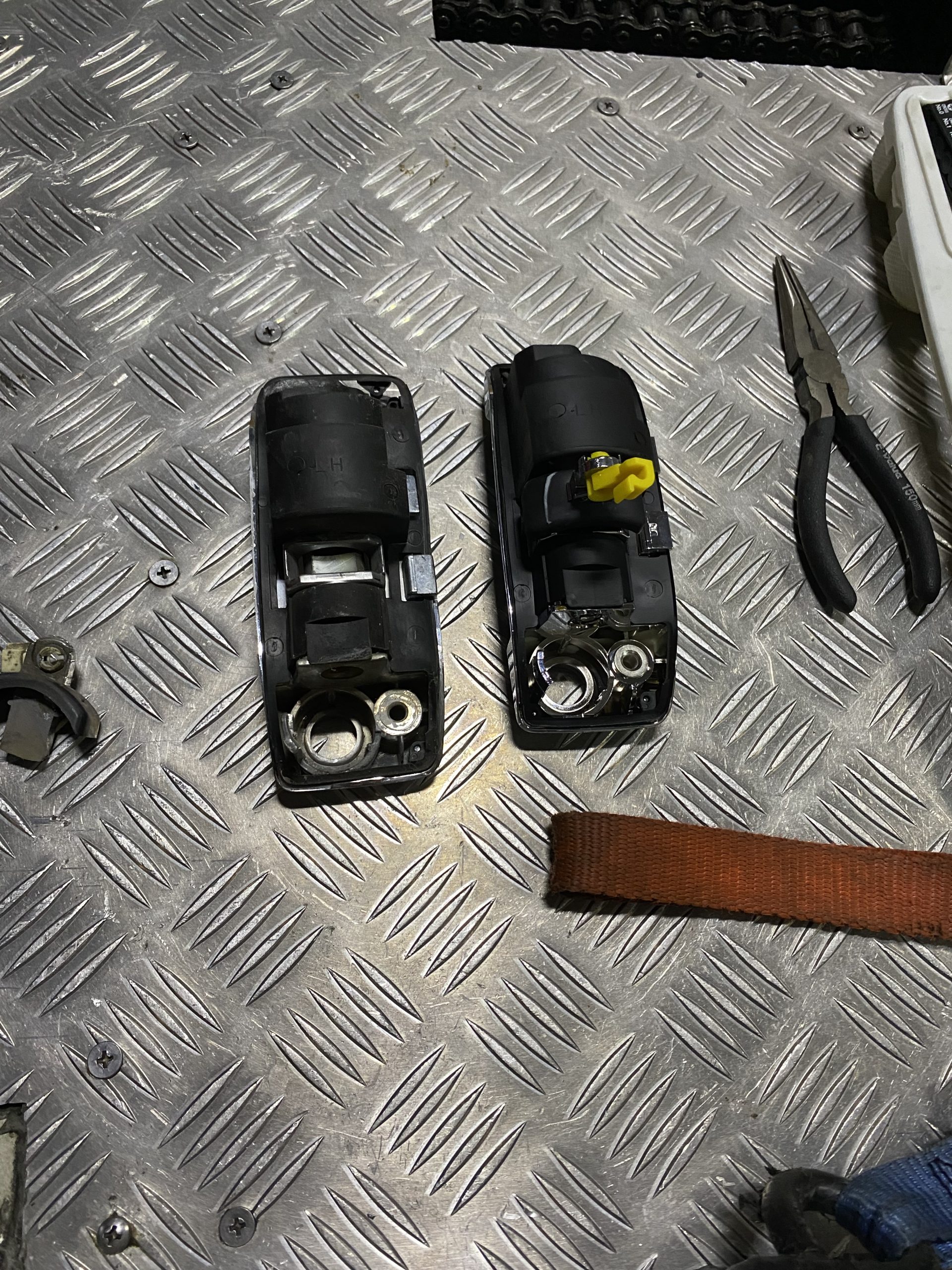 2023.9.17 スライドドアの部品交換!! こんにちは! バイクを運ぶハイエースの スライドドアの取っ手裏側の部品を交換しました!! ↑裏側の部品を交換しました! 右側が新品です! ↑部品を取り外した時の写真です! 取っ手がないというレアな写真ですね! ……ん?? ∑(゚Д゚) ∑(゚Д゚) ∑(゚Д゚) 完成したところを撮り忘れました!Σ(゚д゚lll) ごめんなさい(;_;) 新品を取り付けて無事作業は完了しましたので、 戻って1枚目を見ていただければ幸いです(゚∀゚) レッカー車 完成!!
