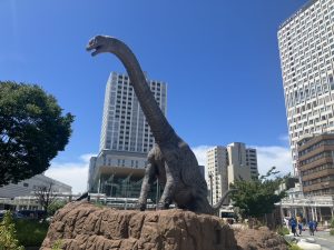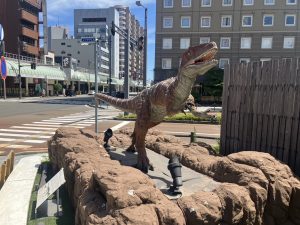 街のあちこちに恐竜モニュメントが並んでいて、迫力満点です!